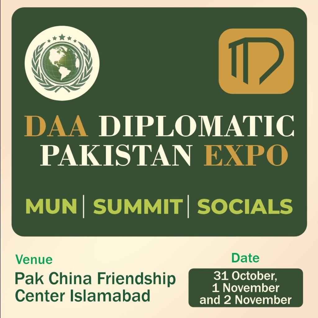 Step into the heart of diplomacy at the DAA Diplomatic Pakistan Expo, a premier platform uniting leaders, diplomats, professionals, and students for meaningful dialogue and collaboration. Featuring a Model United Nations (MUN), high-level summits, and exclusive social events, this expo redefines how diplomacy connects nations and minds.